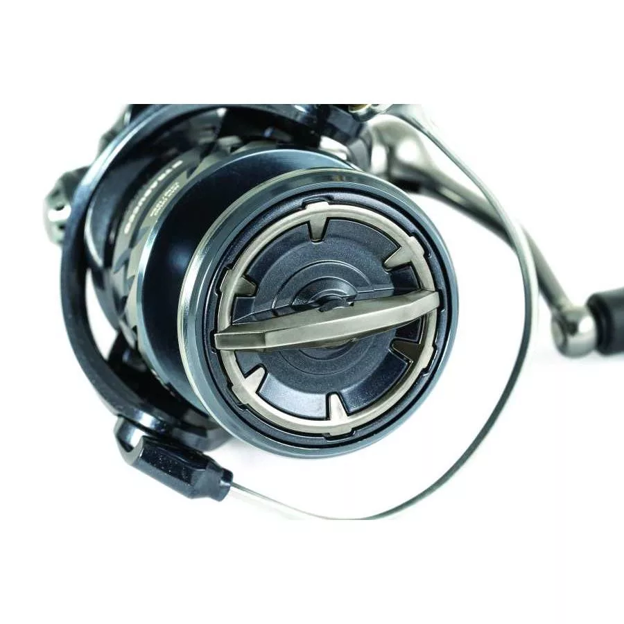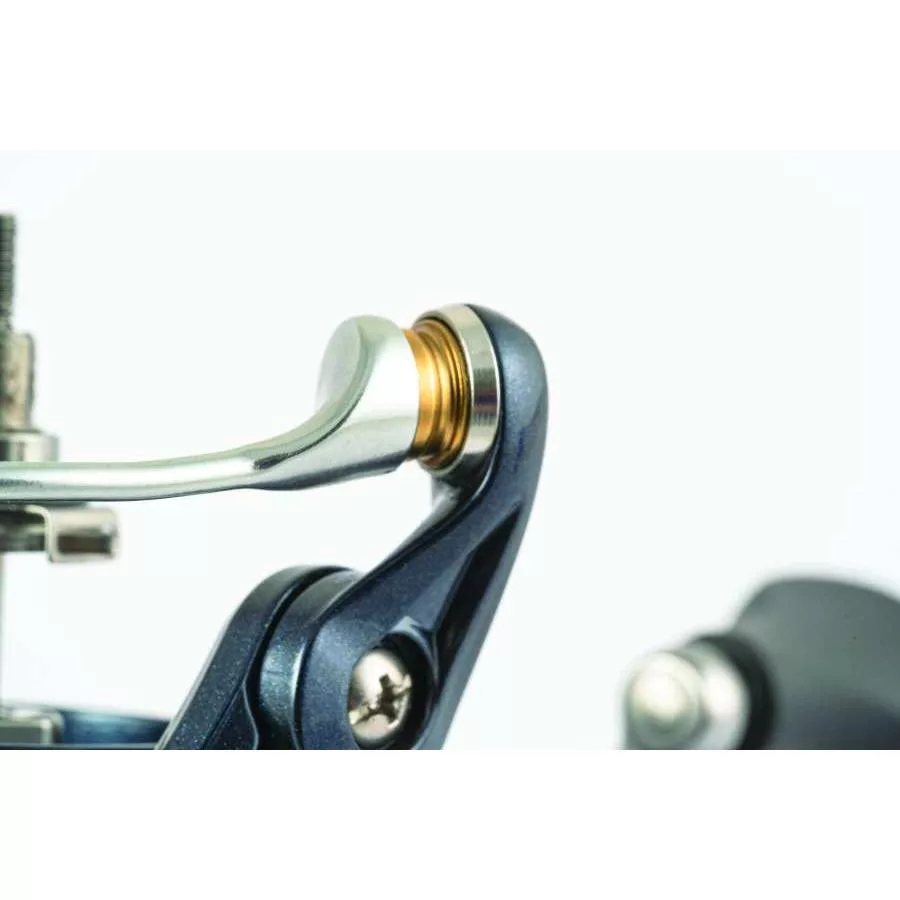 The simple design is not only a stylish detail but also plays an important role in balance and smooth rotation. Its low weight shifts the reel's center of mass backward while reducing the energy required for rotation. Computer-aided design made it asymmetrical to counteract the weight of the bail arm, thus optimizing the smoothness of the entire reel's rotation.