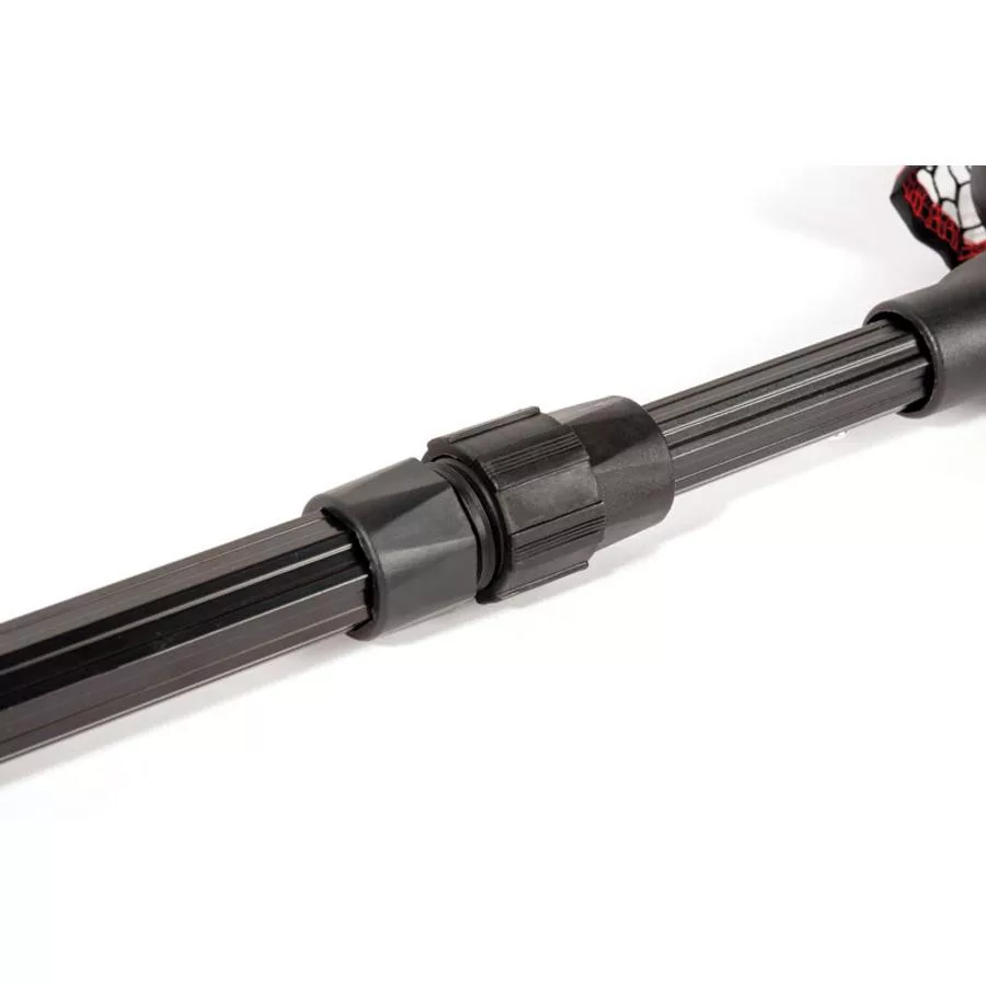 A telescopic landing net with a 'V' shaped head, consisting of 2 or 3 sections, with a 10 mm mesh size. The head attachment is very secure. The handle at the end of the shaft provides a firm grip.