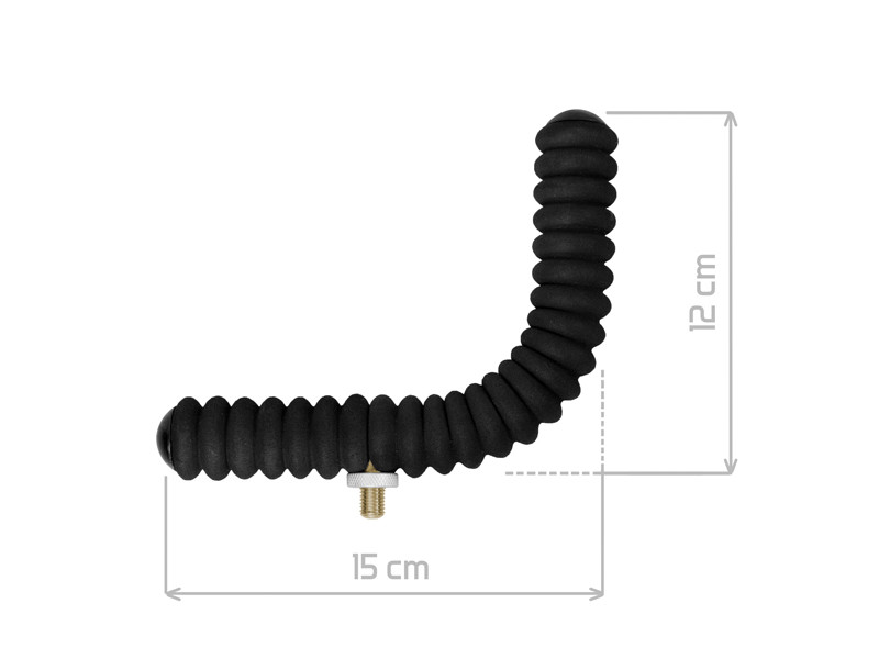 The EVA SmallBEND is an L-shaped rod holder primarily for feeder fishing. The rod holder is equipped with black soft EVA foam to protect your rod. Thanks to its wavy surface, the rod sits securely in place and greatly prevents the rod from falling to the ground. The holder is equipped with a universal thread, which allows it to be mounted on most feeder holders, banksticks, or other holders.
