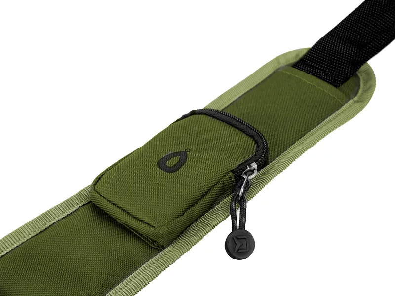On the side of the rod holdall, there is a long zippered pocket, which serves for transporting a landing net or bankstick. A pocket with a clip is sewn onto this pocket, which, compared to the PORTA, is not sewn in half, thus offering greater possibilities. Another interesting feature is the pocket on the soft part of the shoulder strap, where you can place leads or other small fishing accessories. The high-quality zipper, comfortable handle, and shoulder strap are also part of the rod holdall, forming a pleasant unit, a practical helper.