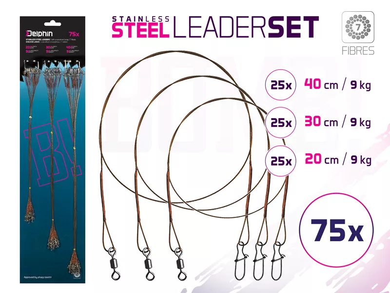 Delphin Set BOMB! steel leader with snap/7 strands (75x /20,30,40cm/9kg) detailed description