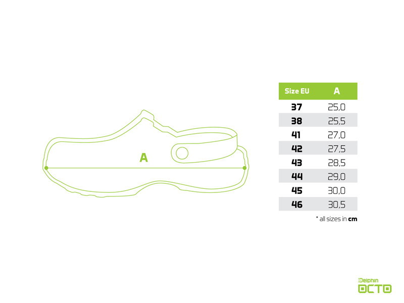 The story behind the origin of the OCTO name is extremely interesting. We designed it with the stylized shape of octopus tentacles, which provide excellent grip in all conditions. The octopus is called OCTOpus in English and OCTOpoda in Latin; these two words inspired the design and naming, which we shortened to OCTO. Another refined detail is the large side openings, which primarily serve for ventilation. They are deliberately not placed at the sole level, as is usually the case, but slightly higher. This is important because it helps prevent sand or pebbles from easily getting between the slipper and the sole, especially when you are on the shore or in shallow water. So you can feel your feet are maximally protected. In addition, the dense perforation on the bottom also contributes to ventilation. On one side, we used the letter D symbol from the Delphin logo, and on the other side, the letter O, which is the initial letter of the OCTO name. The fine texture on the sole's surface, which evokes squid skin, further enhances the overall effect. Thanks to the EVA material, the slippers are extremely lightweight, durable, and float. Of course, the model also includes a heel strap, which helps secure the foot, especially when used on uneven or sloping terrain.