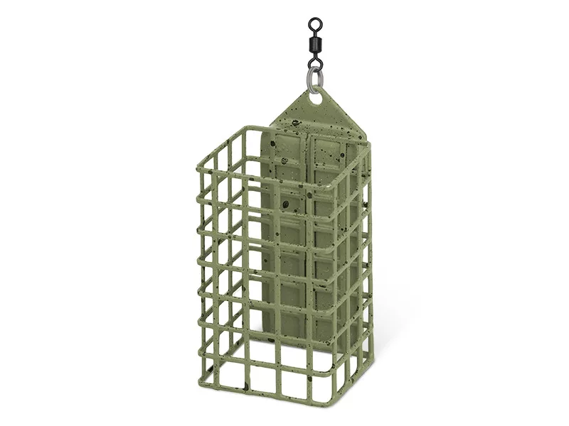 With the innovation of ECO Splash, the lead weight has been replaced with steel, thus eliminating environmental risks. In addition to being environmentally friendly, it is as effective during casting and retrieving as a traditional cage feeder. The cage is made of strong wire, which maintains its shape when loaded. The cage and the weight on it have a unique camouflage design that perfectly blends into the underwater environment.