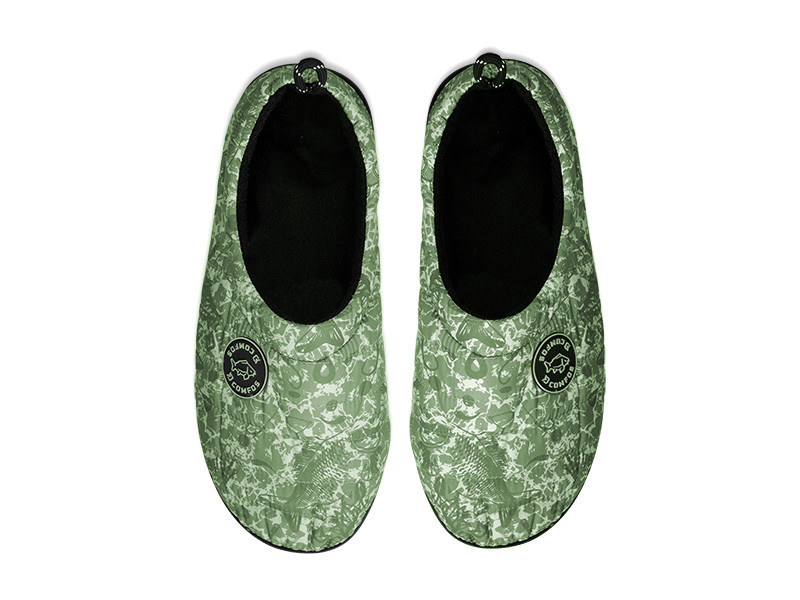 The Delphin Comfos slippers are ideal for camping, by the water, in a tent, and even for home wear. The slippers are made of lightweight materials, with a comfortable design and soft lining, providing real relief for tired feet. Its durable and ribbed rubber sole ensures confident walking, preventing slipping. The slippers are easy to clean. The heel part is equipped with a practical hanger, making it easier to put on. Its unique green color and pattern appeal to everyone. Available in various sizes.