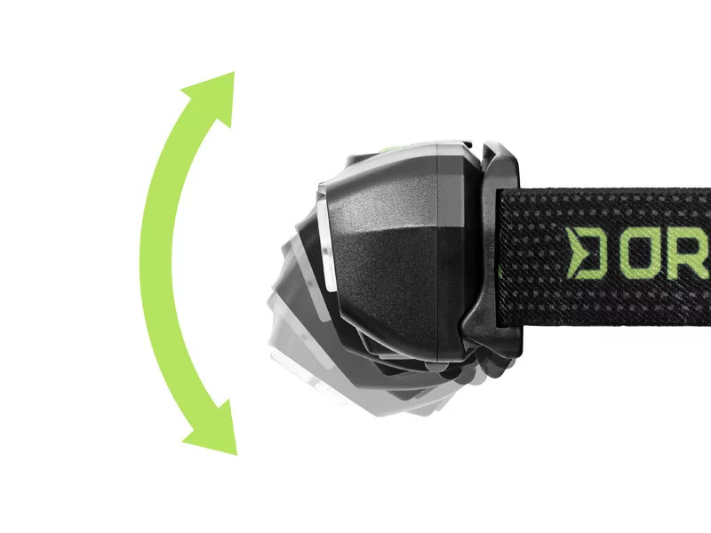 For maximum flexibility, the ORBIX headlamp is tiltable, allowing it to be set to the desired angle. The flexible, adjustable headband ensures comfortable wear.