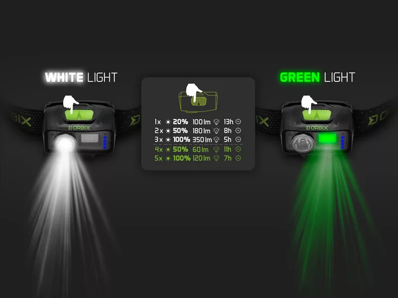 The carefully designed Delphin ORBIX headlamp meets all expectations for night fishing or nature excursions. The lamp illuminates its surroundings with 5 W power and up to 350 lumens of brightness. It is also equipped with a motion sensor, allowing it to be turned on and off with a hand gesture.