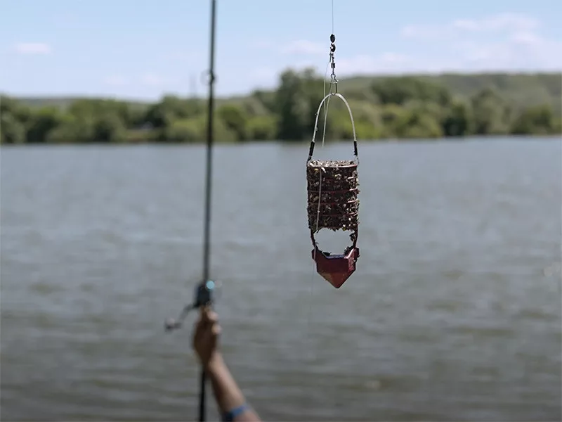 The lead weight of the feeder is hexagonal, which prevents the feeder from turning over during sinking. The aerodynamic shape, the side wings, and the proper placement of the weight extend casting distances and stabilize the feeder's trajectory. The round feeder is made of strong wire, so it does not deform during loading. The space between the weight and the feeder allows you to load the desired groundbait with your fingers. Its matte surface finish does not reflect light underwater. The upper part features a strong crimped loop, allowing for easy connection to our feeder rig.
