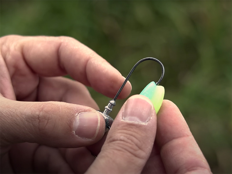 A unique collared jig head for fishing soft baits in the water column or above the bottom. As the name suggests, the head is triangular, aerodynamic, and the bait offers less resistance. This allows it to easily pass through underwater obstacles and move more smoothly in the water. The shape of the head fits well with the bait's silhouette, providing a more natural appearance. The jig is equipped with a thin collar and two rows of triangular micro-hooks that hold the bait in place. Additionally, it is equipped with a very strong, sharp-pointed hook.
