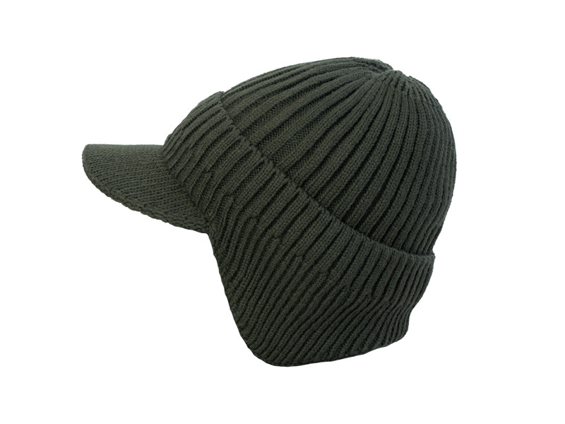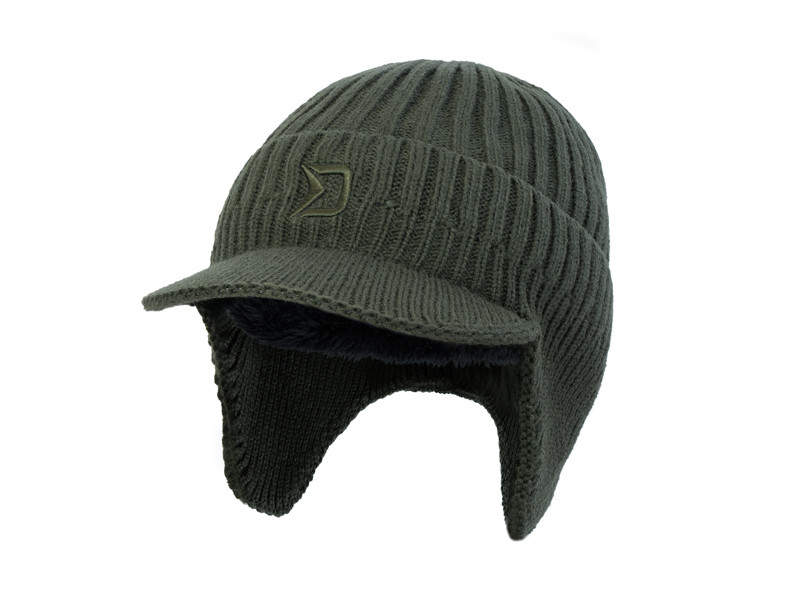 The outer dark green material is flexible and adaptable, giving the hat a universal size. The front features a strong brim that protects the eyes and face from sunlight, as well as rain and snow.