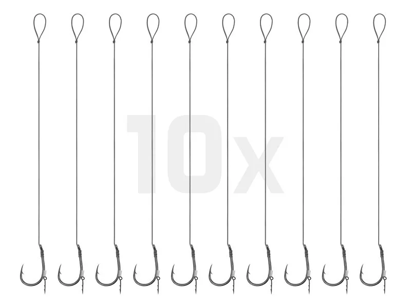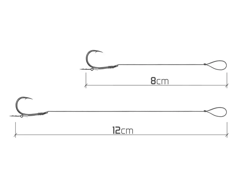 In terms of technical construction, this is an 8-centimeter long leader made of fine braided line, featuring a size 6 Turner hook. The packaging contains 10 precisely crafted rigs, providing sufficient reserve for a long time. Each leader is equipped with a practical bait spike, which provides stable retention for various baits, whether pop-up boilies, wafters, or softer pellets. The braided line used is soft and flexible, helping the bait move naturally underwater.