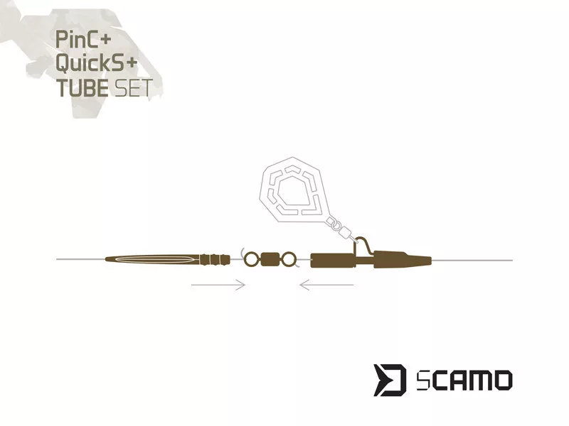 The Delphin sCamo PinC + QuickS + Tube set is a professionally assembled accessory package, developed in the spirit of modern carp fishing and perfect camouflage. This practical kit contains all the technical elements necessary for assembling a quickly prepared, reliable, and almost invisible rig underwater. The elements of the set are part of the sCamo series, so fishing tackle does not appear as foreign objects on the bottom, but rather integrates organically into the aquatic environment.