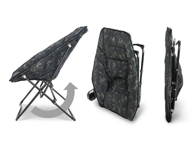 The large, hexagonal seating surface provides extra comfort for longer sitting. The metal frame design is robust and stable, even on uneven ground. It can be folded in moments, so you can pack up quickly if you get a bite or need to move. Compact transport size, which offers a space-saving solution, yet provides large-sized comfort.