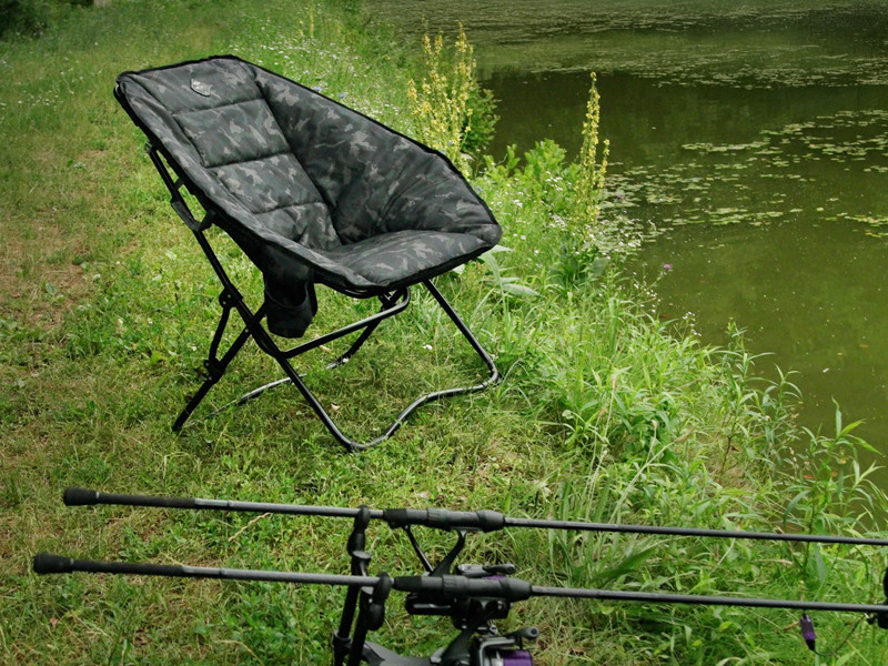 The chair is based on a strong X-shaped metal frame that can withstand daily use – whether you use it on gravel or soft ground. Folding and unfolding take only a few seconds, so you don't have to bother with setting it up or packing it away. Although it is a large fishing chair in terms of size, it can be folded into a surprisingly compact size, which makes it easy to transport and store.
