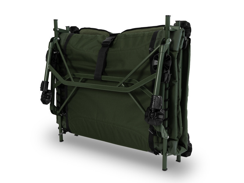 The fishing bed can be opened and folded in a few seconds, making it quick and effortless to use. Safe transport is facilitated by detachable, length-adjustable straps, which are secured by sturdy plastic buckles – these prevent accidental opening during transport.