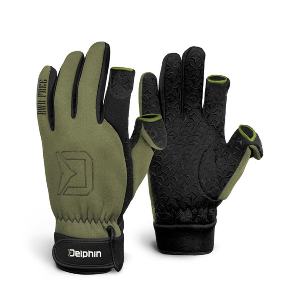 The green-black color combination provides a sporty and practical appearance, making the Delphin RWR Free gloves an excellent choice not only for fishing but also for other outdoor activities.