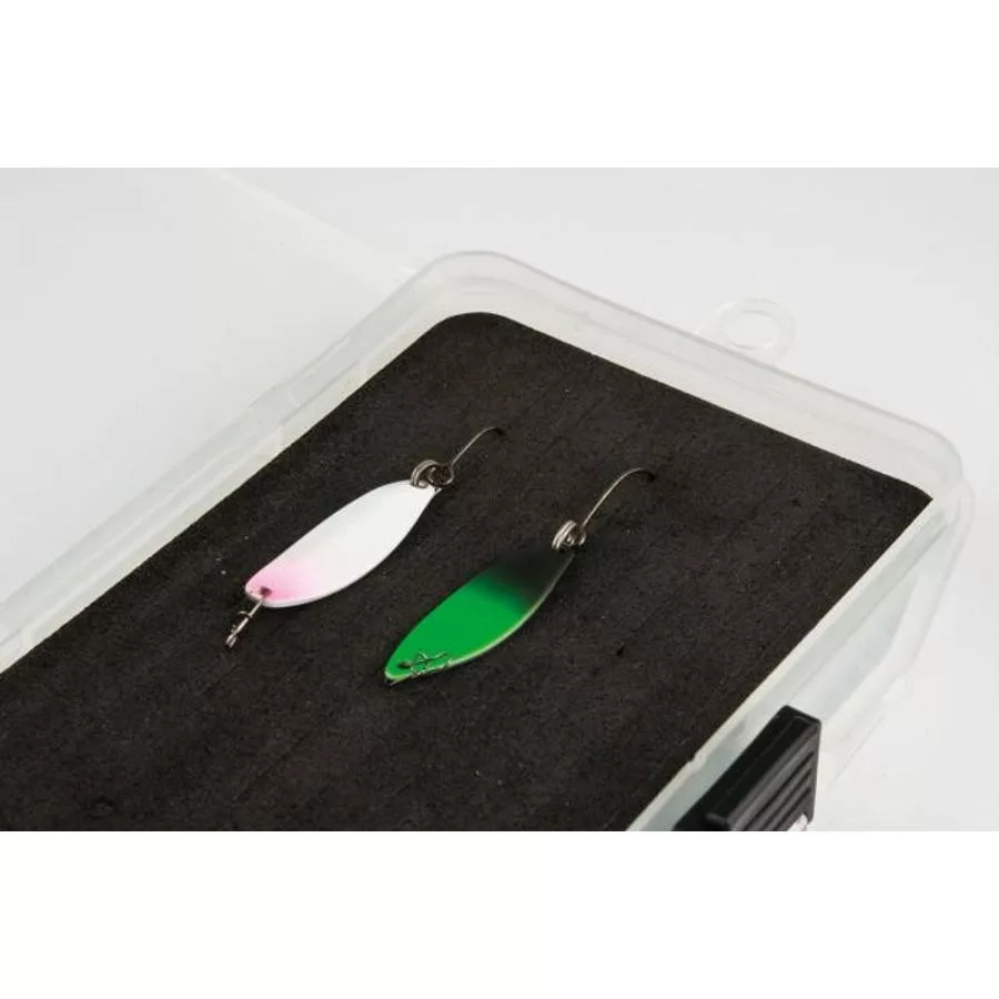 Every element of this box serves modern, precise fishing: it protects small, valuable lures while providing quick access to them. The small size and light weight perfectly match the active spinning angler's style, where every gram and every second counts. The durable plastic can withstand regular use in the long run and won't accidentally open in your bag. The transparent lid helps in quick lure identification, so you don't have to waste time searching unnecessarily. In short: a smart, efficient, and reliable companion for every waterside adventure.