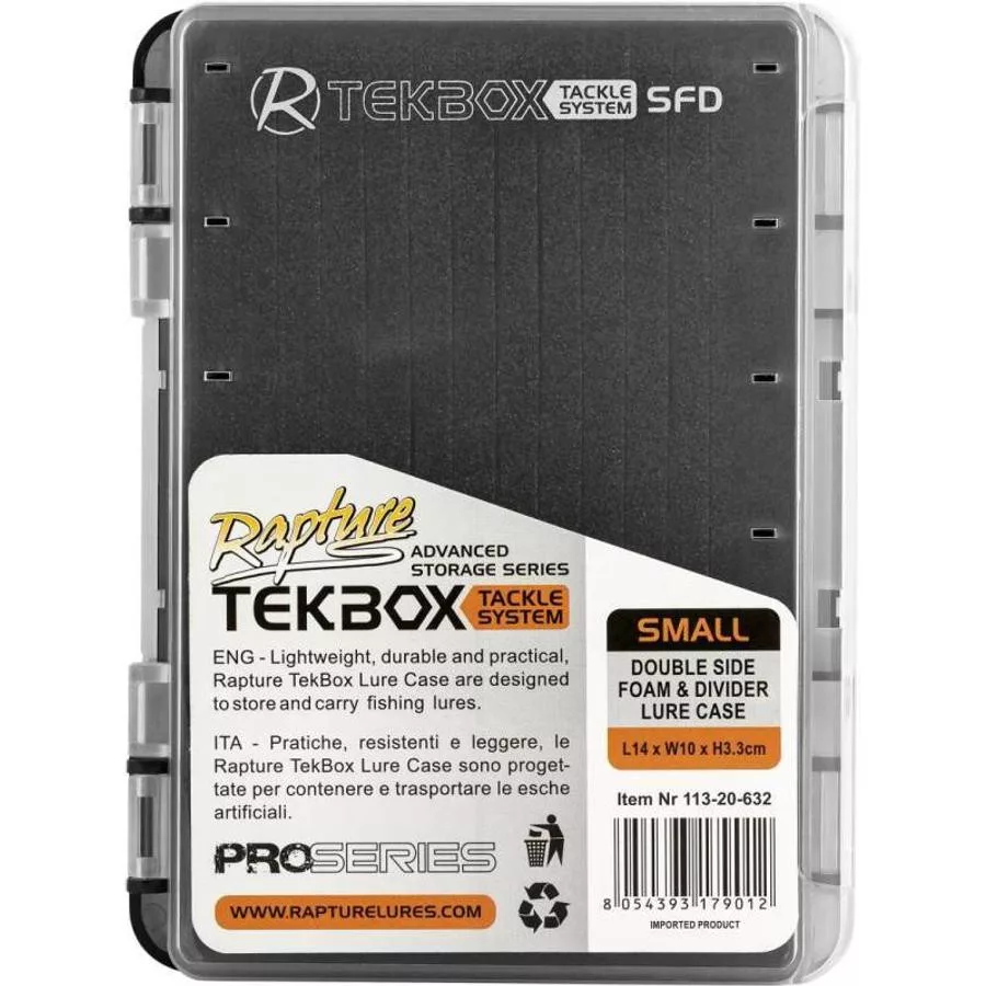 Package contents: Rapture Tekbox Tackle System S FD Tackle Box 14x10x2.3cm