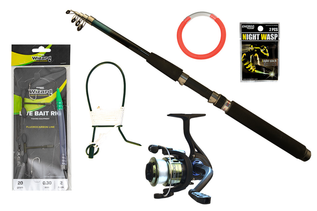 The set includes all the small items essential for zander fishing: the pre-prepared Wizard Live Bait Rig facilitates the use of live bait, the bite indicator ring with luminous cartridges assists night fishing, while the fish stringer provides safe storage for the caught prey. The transport of the entire equipment is enabled by a durable rod holder bag, which protects the tools and provides comfortable carrying.