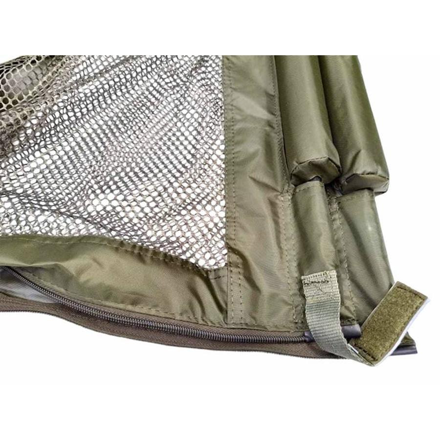 The durable, rubberized mesh material ensures that the fish's body is not damaged by the surface, while water drains quickly, facilitating accurate weighing. The stiffening rods can be folded in half, so the weigh sling takes up little space when not in use, making storage and transport extremely easy. A particularly practical feature is that it does not require a separate float, as a built-in floating system is part of the basic accessories, which facilitates its use in water.