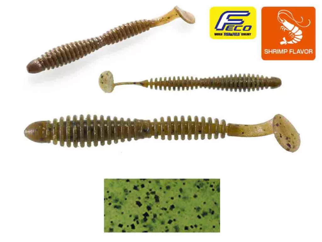 The 'Flexy Shad' name refers to the lure's extremely flexible and lifelike movement, which produces a vibrating, natural action with the slightest water movement, providing an irresistible attraction to fish.
