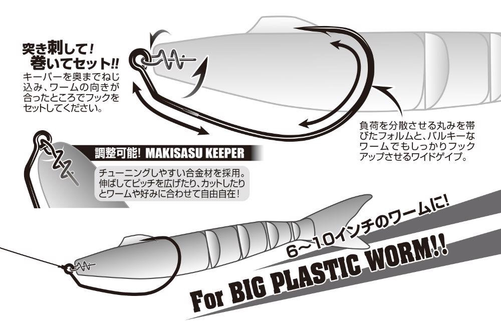Package contents: Decoy Worm 30M Makisagu Magnum 10/0 Offset Hook 2pcs