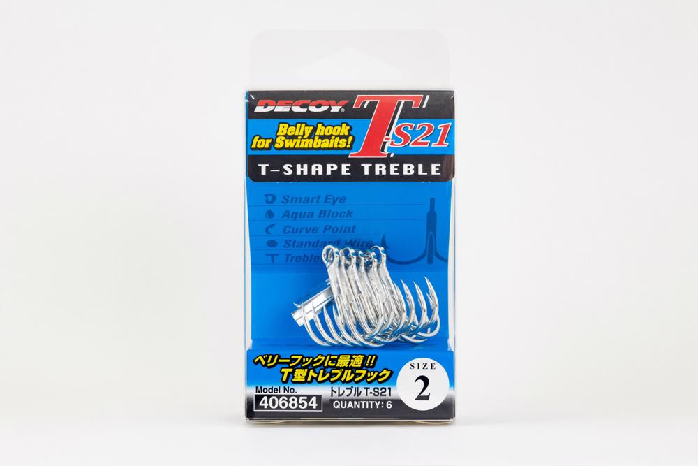 Decoy T-S21 Belly Hook #4 Eyed Barbed Treble Hook 6pcs