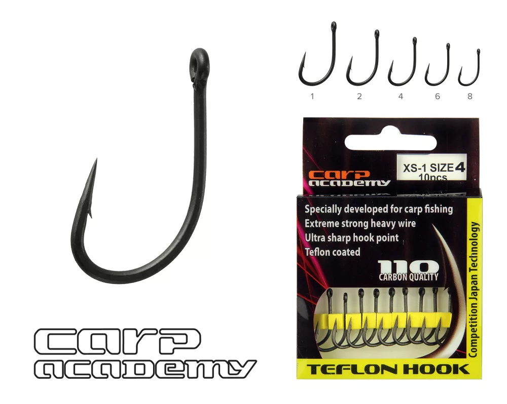 Carp Academy Teflon Hook XS-1 Black 1 10 pcs/pack Eyed Barbed Boilie hook