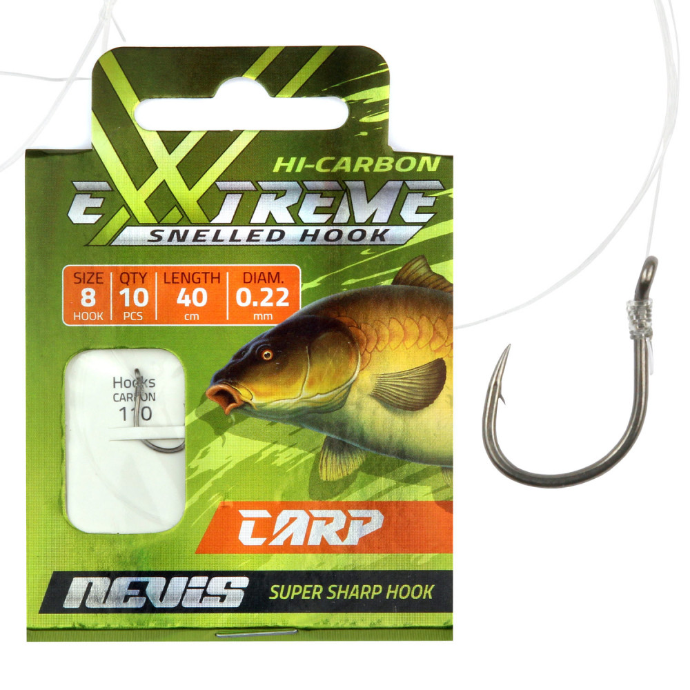 Nevis 4 Barbed, Eyed 40cm 0.25mm Monofilament Pre-tied Carp Hook 10pcs