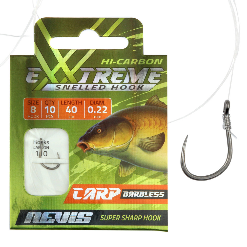 Nevis 10 Barbless, Eyed 40cm 0.20mm Monofilament Pre-tied Carp Hook 10pcs