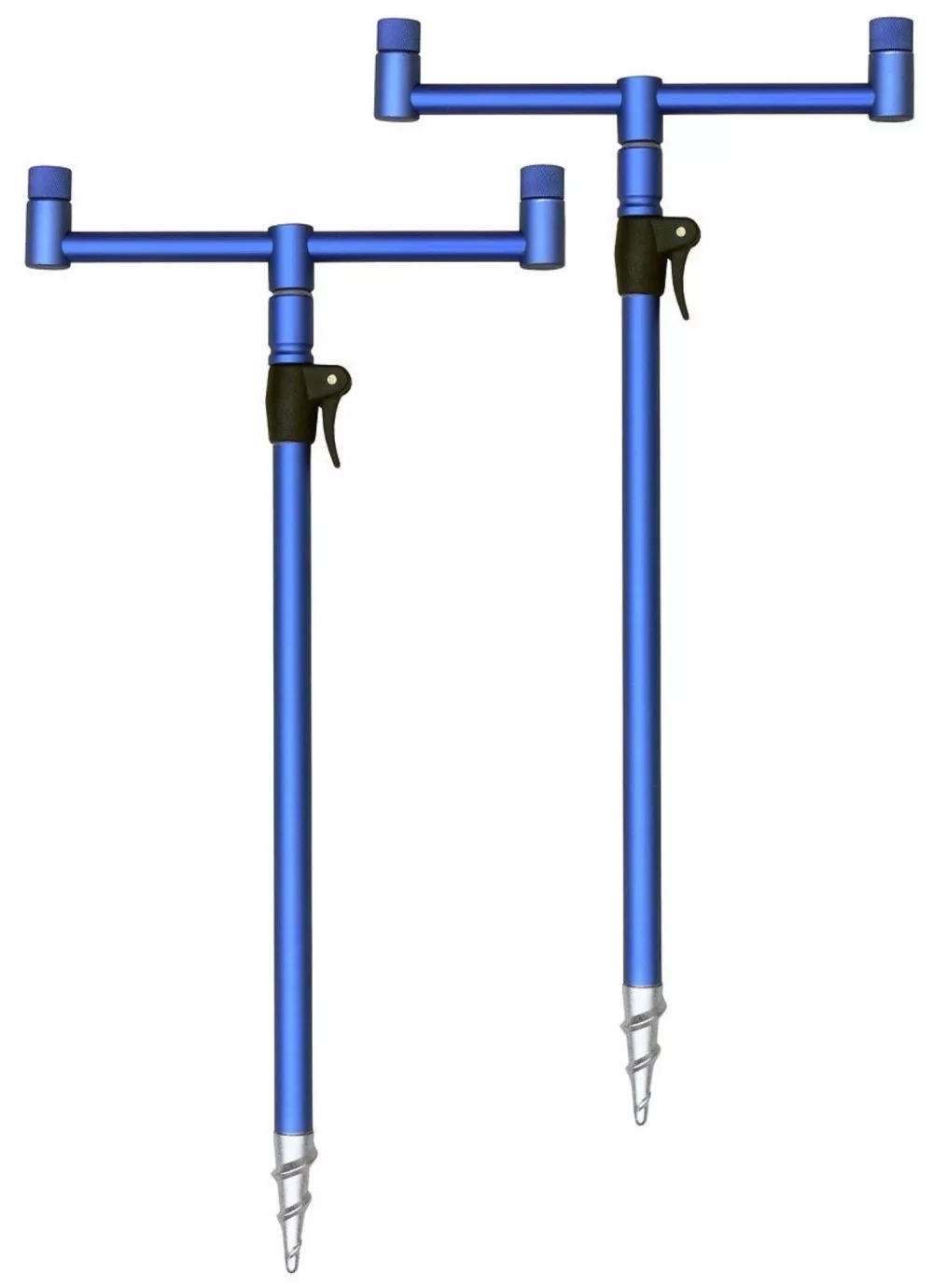 Probably the most versatile two-rod set on the market. Practical, lightweight and compact. This set includes 2 pcs of 22 cm wide buzz bars, as well as 2 pcs of 40 cm threaded banksticks. Since the handle is telescopic, its length can naturally be extended, in this case up to 60 cm. The high-quality aluminum bankstick has a metallic blue surface and an extra strong tip, making it easy to screw into the ground. The quick and easy adjustability of the shaft is ensured by a buckle connector. The crossbars feature a positioning counterscrew, which allows for practical and quick adjustment of the rod rest heads.