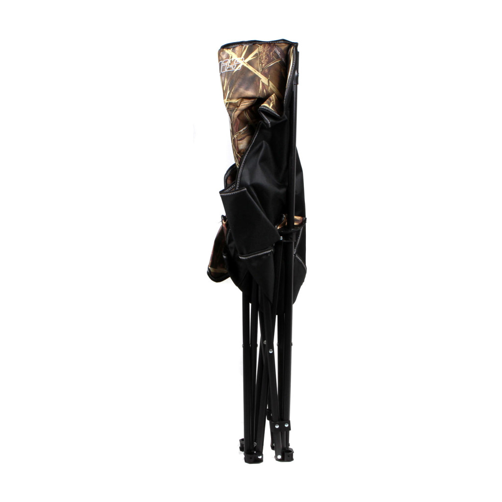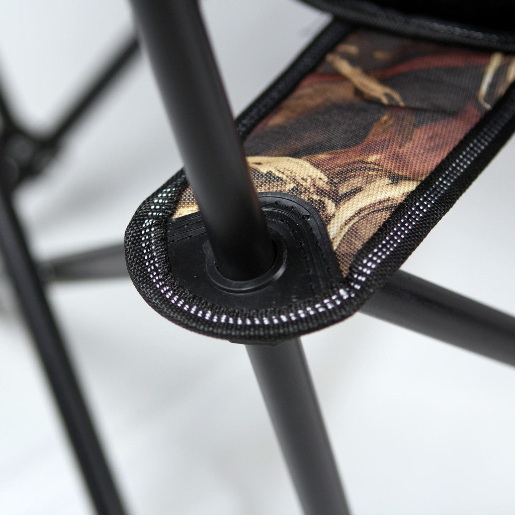 The cover is made of 1600D Oxford Nylon, which is extremely strong, wear-resistant, and guarantees a long lifespan. The camouflage canvas is not only durable but also provides a discreet appearance, blending perfectly with the natural environment. The chair weighs 2.1 kg, which gives it stability while still being easy to carry.