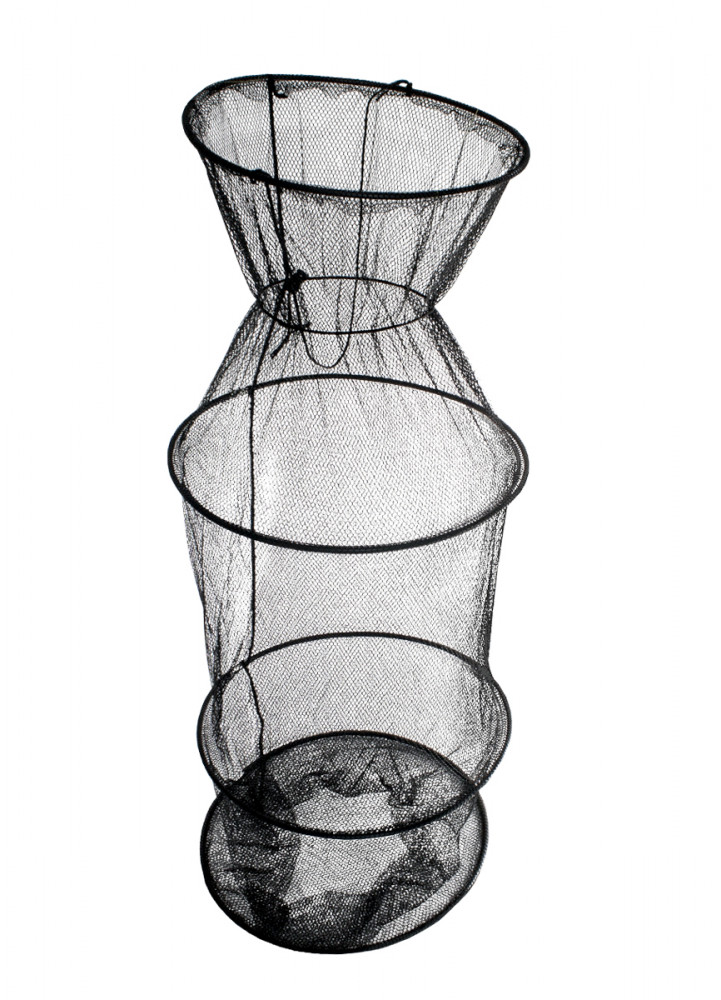 Its upper part can be tightened and tied with a practical drawstring below the first ring, making it harder for the placed fish to escape. Moreover, if the water is far from us, or the shore zone is shallow, we can sink it further down completely underwater.