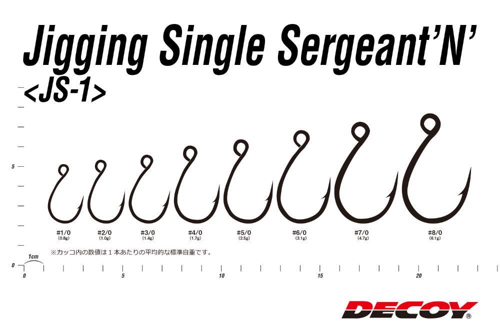 Decoy JS-1 Jigging Single Seargent N #5/0 Eyed Barbed Single Predator Hook 4pcs detailed description