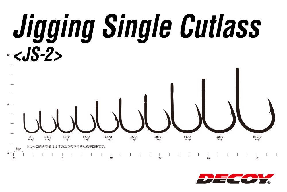 The Decoy name stands for Japanese precision and decades of experience in fishing tackle. The JS-2 Jigging Single Cutlass N model is a specially shaped, extremely strong and durable hook, designed to withstand even the wildest strikes.