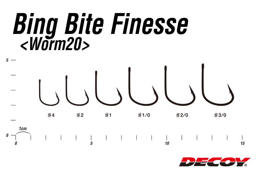 The Decoy name guarantees Japanese precision and uncompromising quality. The Worm 20 Big Bait Finesse hook is made in #4 size, an ideal choice for fishing with finer, yet large baits. The single hook design minimizes fish injury while providing maximum penetration power. The hook's eyed shank allows for quick and easy tying to any line, ensuring a stable fit and effective bait presentation.