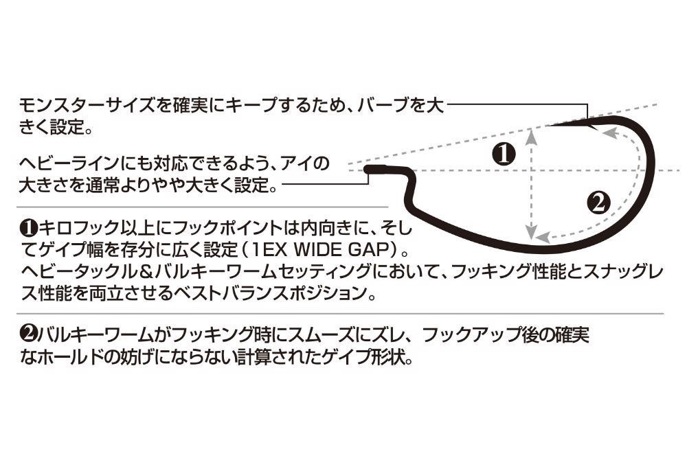 » Offset design for perfect soft plastic bait presentation and minimizing snags.