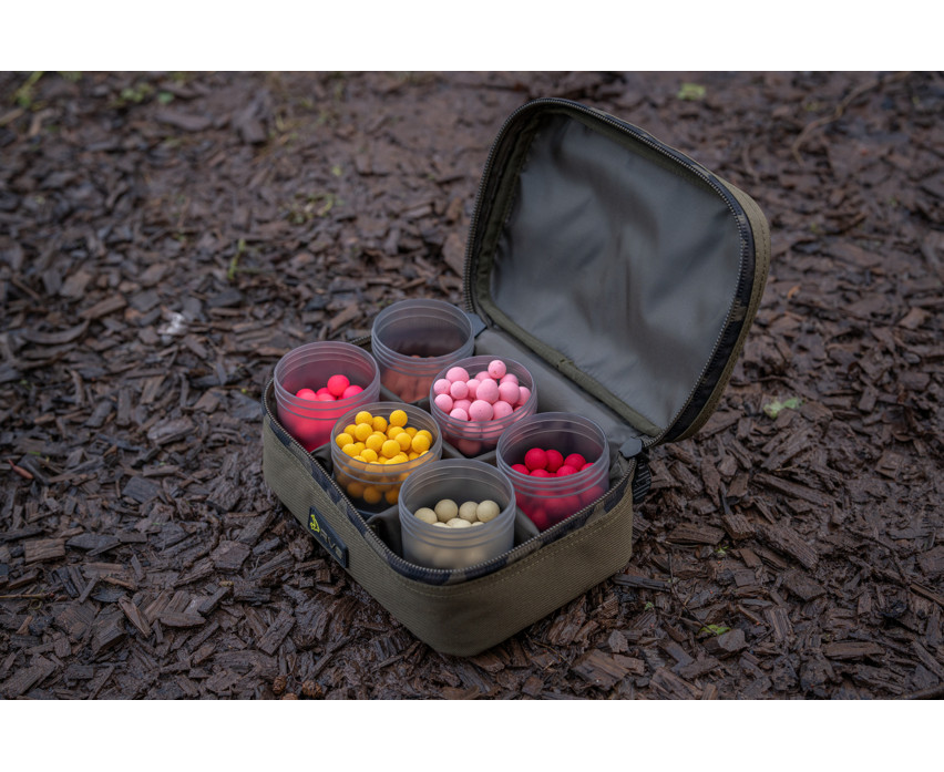 Designed for the safe storage of hookbaits, dips and liquids in a single compact case. Includes 8 watertight bait containers (4 large, 4 small), perfectly suited for storing your favourite hookbaits. Features a handle for easy transport. Made from durable, waterproof 600D Oxford fabric with heavy-duty 10mm zippers, featuring Avid camouflage details.In addition to accessories, our Fishing shop offers a wide selection of high-quality Baits and groundbaits for all fish species. Fishing is not just about catching fish, but also about enjoying the proximity of nature. In our Camping category, you'll find everything needed for a comfortable and safe stay by the water. Don't miss out on our latest products either! In our webshop, we only offer products from the most reliable and recognized Brands. You can choose from fishing equipment from renowned manufacturers such as Korum, Garbolino, Fox, and many more. You'll find everything you need for successful and enjoyable fishing here!The package contains: Avid RVS 8-pot Hookbait Pouch Bait Holder Bag 9x24x16,5cm