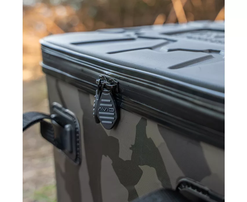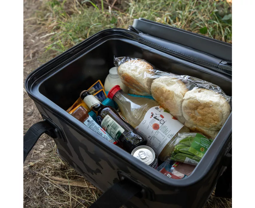 The Avid Stormshield Camo EVA Cooler bag is a premium quality storage device with a 25-liter capacity, specifically designed for the storage and thermal insulation needs arising during fishing. The bag is made of ultra-durable EVA material, which is not only waterproof but also extremely resistant to mechanical impacts. The inner walls are equipped with rigid, thick hollow-fiber insulation, so the Cooler bag maintains the temperature of the food or bait stored inside for a long time.