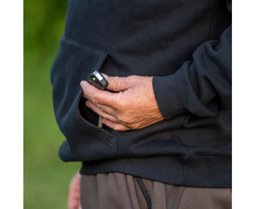 The hoodie's design is specifically optimized for longer periods spent outdoors. The durable and warm material, comfortable cut, and protective hood ensure that the angler can fully concentrate on the water and bites, without being disturbed by adverse weather conditions. The black color also doesn't draw attention, making it blend better into the natural environment.