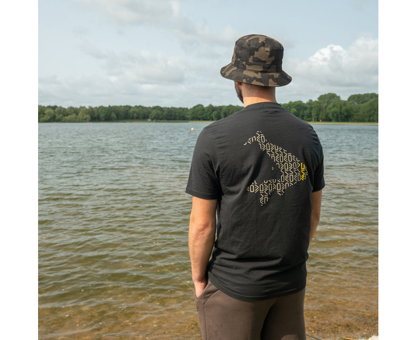 The Avid Compound T-Shirt is a clean-looking, black cotton T-shirt specifically designed for anglers. It features a large, 3D-effect Avid fish head graphic on the back, providing a distinctive look without being too flashy. This classic-fit T-shirt offers comfortable wear whether on the bank or in everyday life.