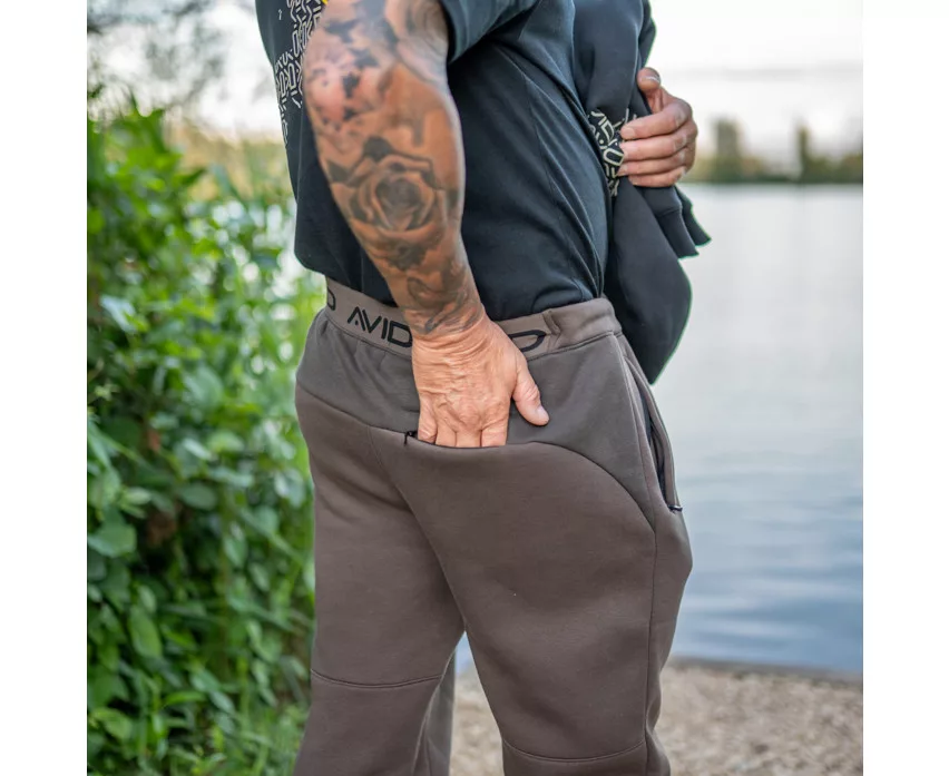 The Avid Compound Joggers are premium quality, peat brown sweatpants specifically developed for fishing and active leisure activities. The trousers are made from 80% cotton and 20% polyester, providing an ideal balance between comfort, warmth, and durability. The 290-gram fabric thickness offers excellent thermal insulation in cooler weather, yet it remains breathable, making it suitable for all-day wear.