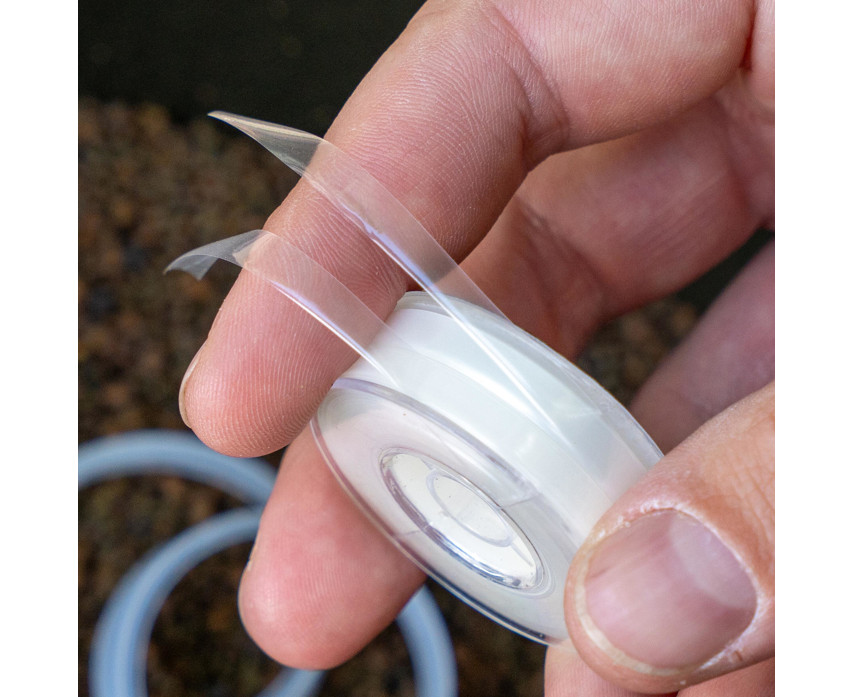 The tape is made of premium quality, pH-neutral PVA material that does not affect the water's chemical balance and ensures a clean, natural bait presentation. The 40-meter length is supplied on a sealed dispenser, which facilitates handling and storage, and protects the tape from moisture and mechanical damage.