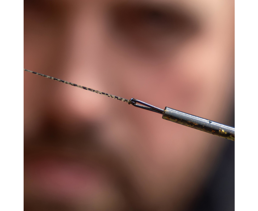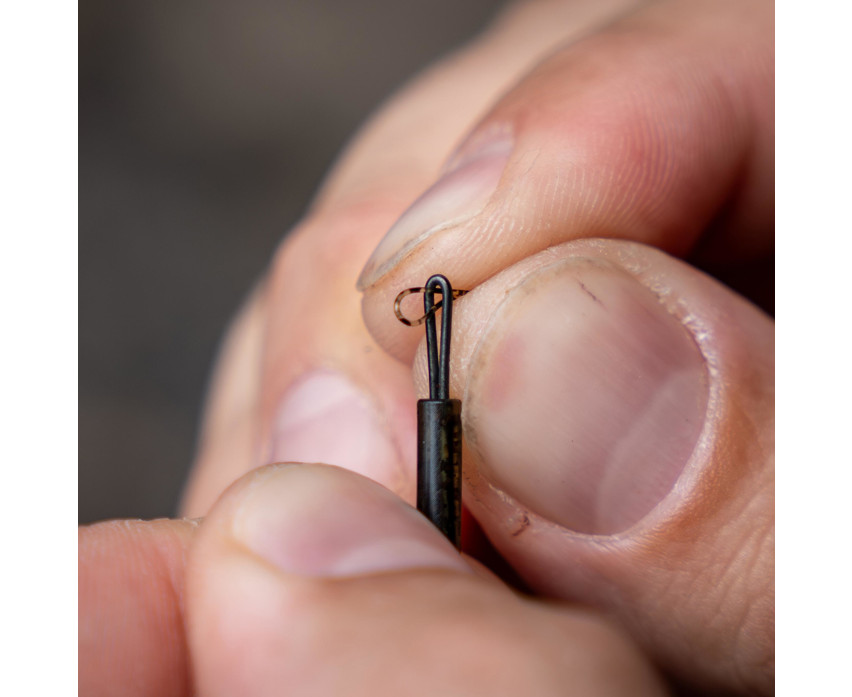 The tapered, narrow-profile loop at the top of the stem can accommodate main lines up to 0.50 mm thick. The main line can be tied directly to the loop, or a loop-to-loop connection can be used for quick PVA bag changes. This flexibility allows the angler to adapt the rig setup to their own technique and situation.