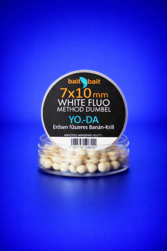When fish are less active, or when we want to tempt the most cautious specimens, choosing the right bait is crucial. The BaitBait Yo-Da 7x10mm Flou Method Dumbel White Wafter offers a solution to this exact challenge, an innovative hookbait that proves itself even in the toughest conditions. This special wafter is an essential accessory for method feeder fishing, designed to make the hookbait behave naturally, yet attractively, underwater.
