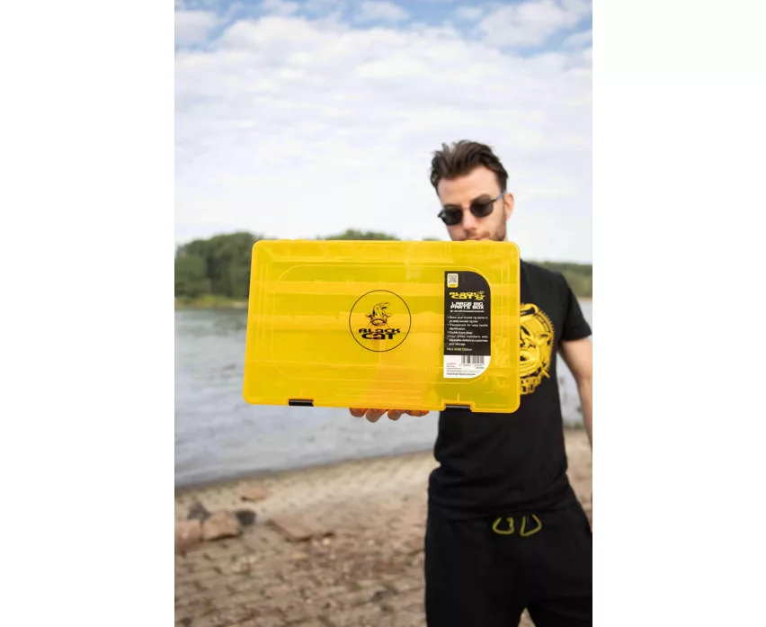 The Black Cat Sectioned Rig Bits Box is a compact, four-section leader box specifically designed for the safe and organized storage of fishing rigs, small tackle items, and leaders. The practical design of the box allows anglers quick access to essential rigging materials, while keeping them protected from damage and tangling.