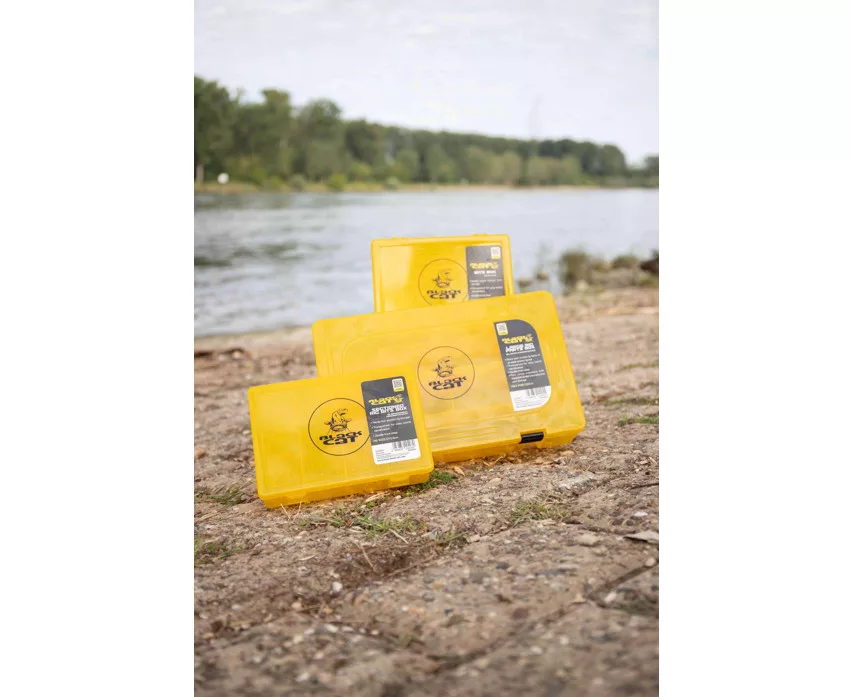 The box measures 22 × 15.5 × 6 cm, making it easy to fit into any fishing bag or backpack. Thanks to its transparent lid, the contents can be easily identified, so there's no need to open the box every time to search. The double front closure keeps the lid securely shut, preventing accidental opening during transport.