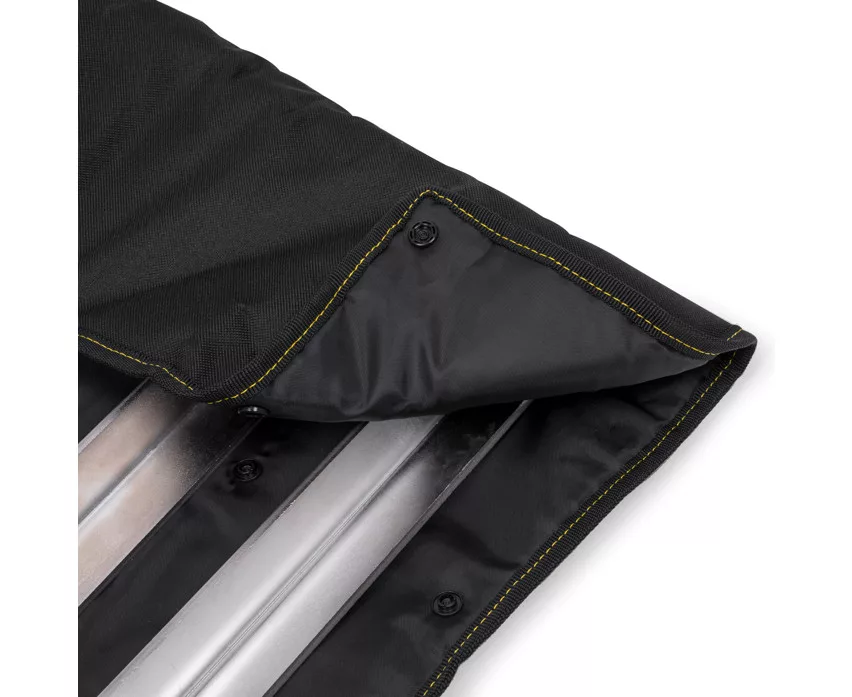 The Black Cat BLCK Bank Stick Wrap is a practical and durable storage bag specifically designed for transporting and safely storing bank sticks. Its unique design allows for the placement of up to four Black Cat bank sticks, making it an ideal choice for anglers who regularly use these accessories during bank fishing.