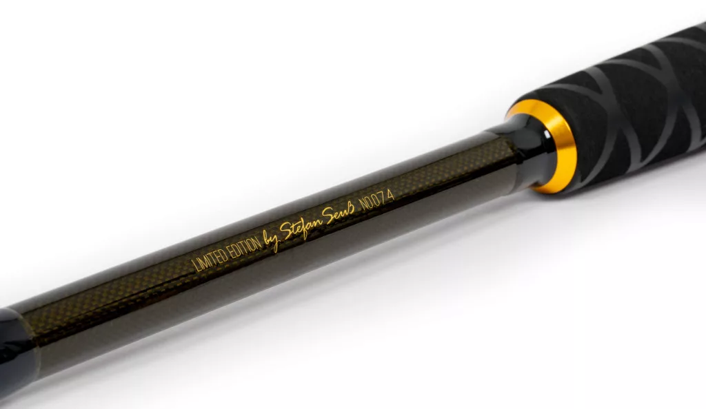 Comfort and functionality were the primary considerations in the grip design. In addition to the premium cork handle, an X-Wrap coated EVA fighting grip ensures a non-slip hold and maximum grip even in wet conditions. The aesthetic appearance is provided by the combination of dark green and gold shades, as well as discreet branding. This model is part of a limited edition of just 100 pieces, where every rod is individually numbered and authenticated by Stefan Seuß's personal signature.
