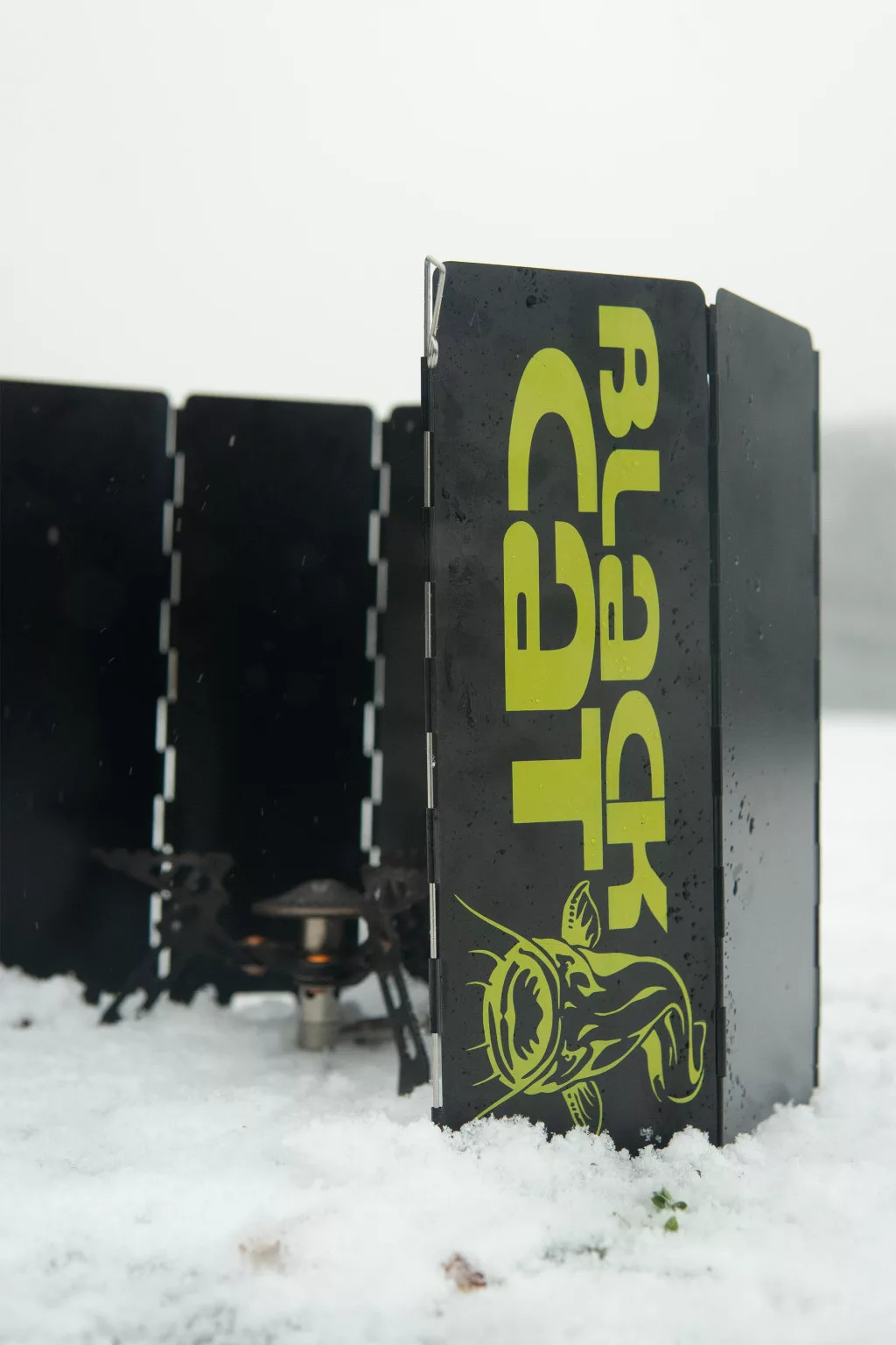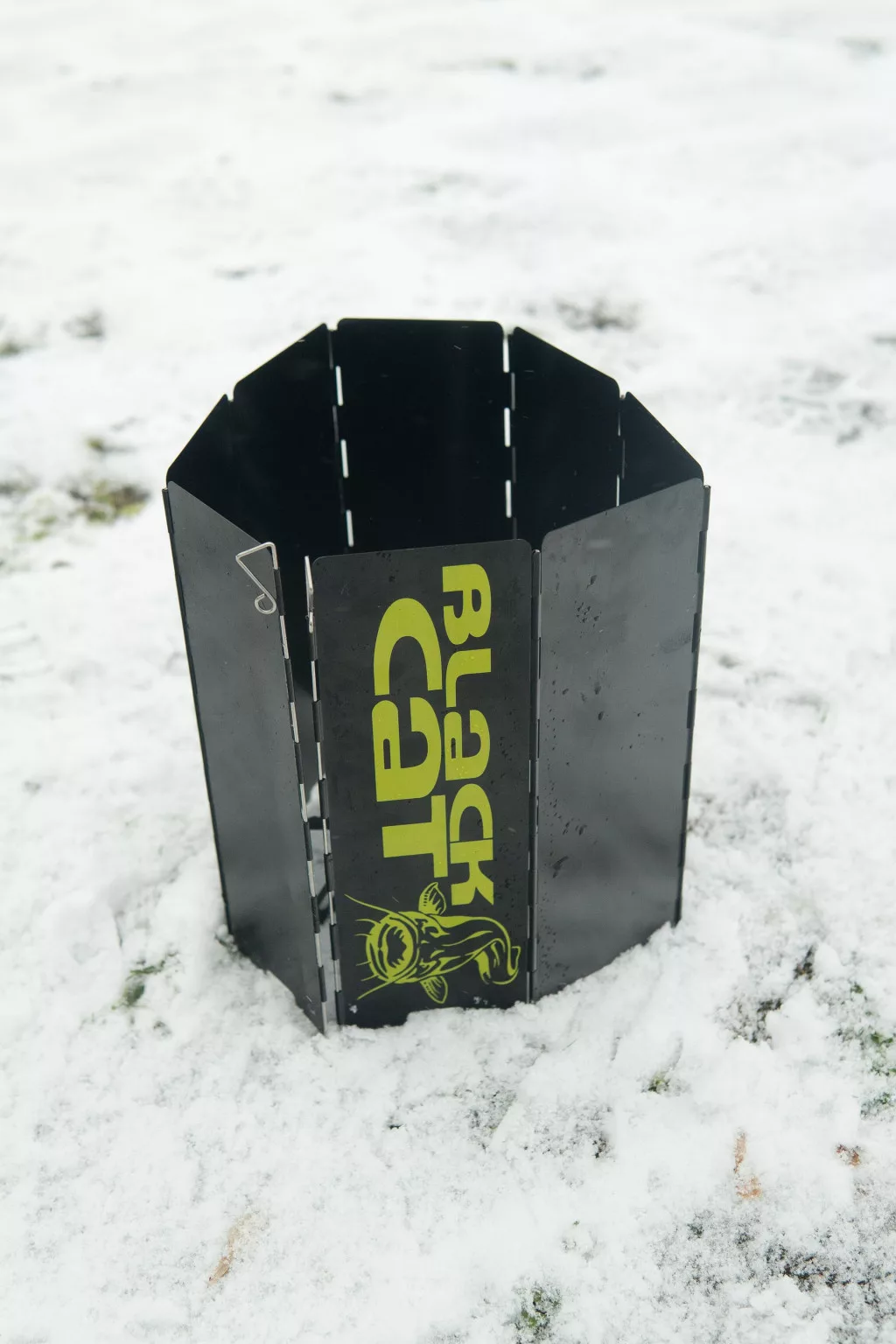 The Black Cat Stove XL Wind Shield is a large, robust wind shield specifically designed for outdoor cooking and protecting stoves. Its purpose is to keep the flame stable even in stronger winds, thus making cooking more efficient and safer. When unfolded, its size of 24 cm high and 66 cm wide provides full coverage, which is particularly useful during fishing, when outdoor meal preparation often takes place in windy environments.
