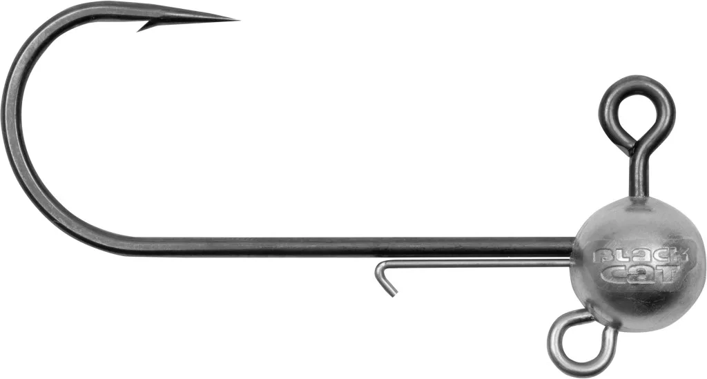 The Black Cat Mega Jig Head is a heavy-duty jig head specifically designed for strong, large catfish lures. Every element of its construction serves durability and a secure hookset, making it well-suited for situations where the power of large predators represents a serious challenge.